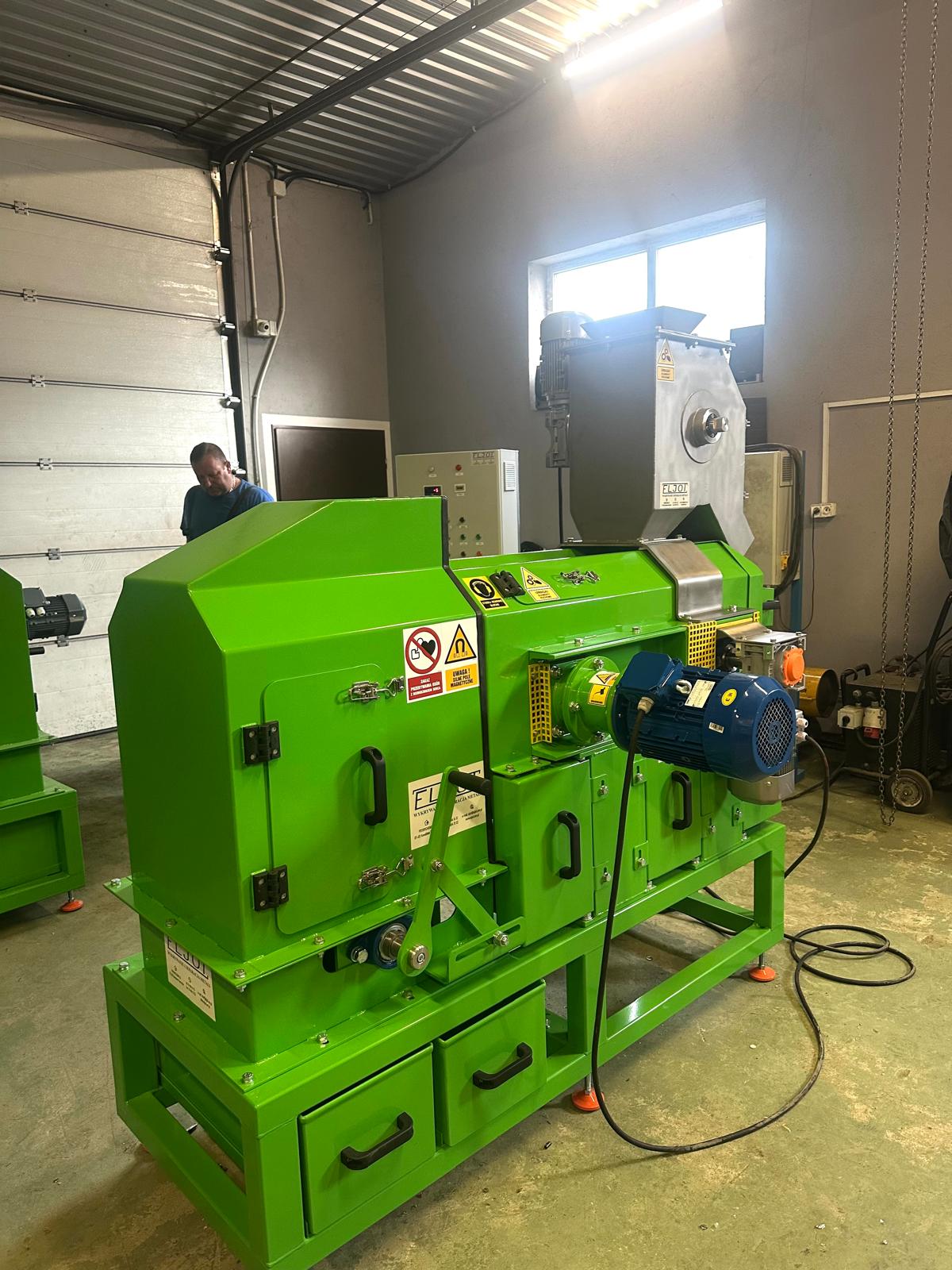 - Płynna regulacja prędkości obrotowej rotora oraz taśmy za pomocą falownika z wyprowadzonym potencjometrem na obudowie szafy sterowniczej